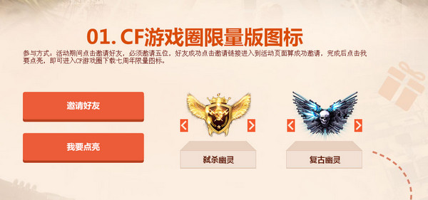 邀请好友,点亮七周年限量图表,同时游戏圈七周年版限量图标即可下载