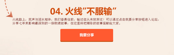 穿越火线CF火线时刻暑期痛快玩重磅出击;这里有最酷炫的游戏圈限量图标,享受独一无二的荣誉;这里有最霸气的黄金武器、道具卡,游戏超神不再是梦;这里有最实用的火线时刻,与好友分享自己的游戏时刻;这里有最感人的火线不服输,说说那些年我们之间的故事! 活动地址:http://qt.