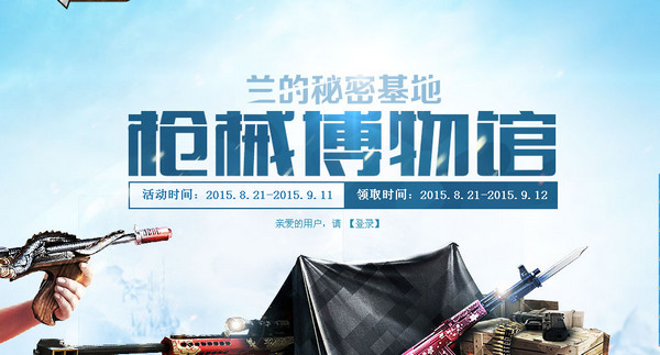 cf兰的秘密基地活动终于放出啦!本次cf兰的秘密基地活动与以往的活动有很大不同,玩家来到兰的枪械博物馆即可随意试用一号展厅的所有枪械,累积登陆后就能免费领取相对应的枪械了;下面我们就一起来了解cf兰的秘密基地枪械博物馆活动详情吧! 活动时间:2015.8.21-2015.9
