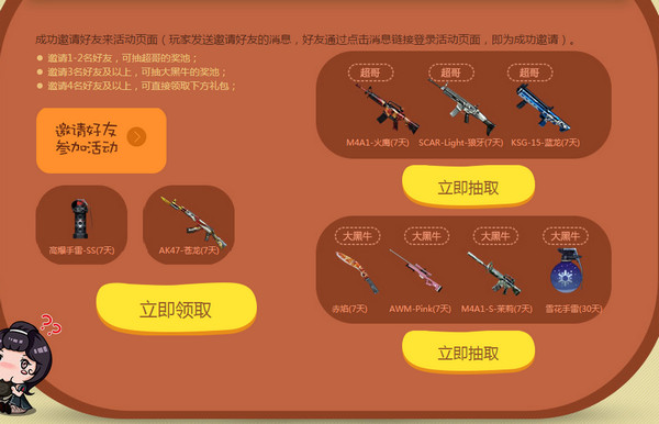 成功邀请好友来活动页面(玩家发送邀请好友的消息,好友通过点击消息链接登录活动页面,即为成功邀请)。