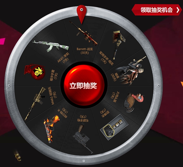 3.活动期间每天登录游戏完成一局爆破模式后可在页面领取抽奖机会参与抽奖,单Q每天一次。