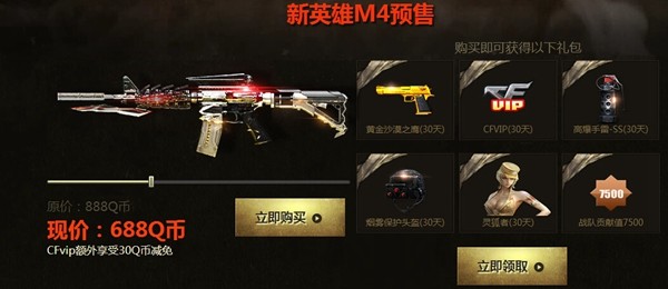 1.预售活动时间:10月14日——10月28日,在此期间无法在游戏内直接购买英雄级M4