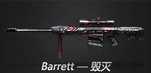 Barrett-毁灭做为穿越火线的又一把英雄级永久武器,不论从外观效果还是实战体验都是你值得拥有的一把利器!参与专题下方的评论或者微薄话题并留下您的QQ号,即有机会选出3名小伙伴获得17173穿越火线专区送出的精美武器 CDkey一枚。